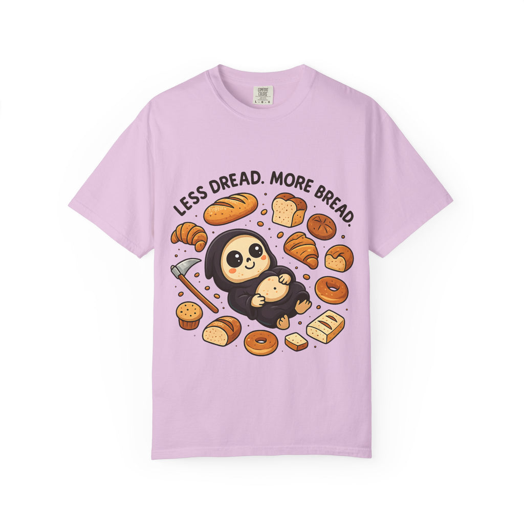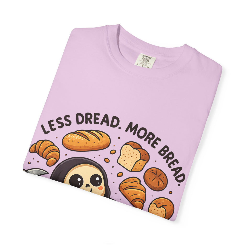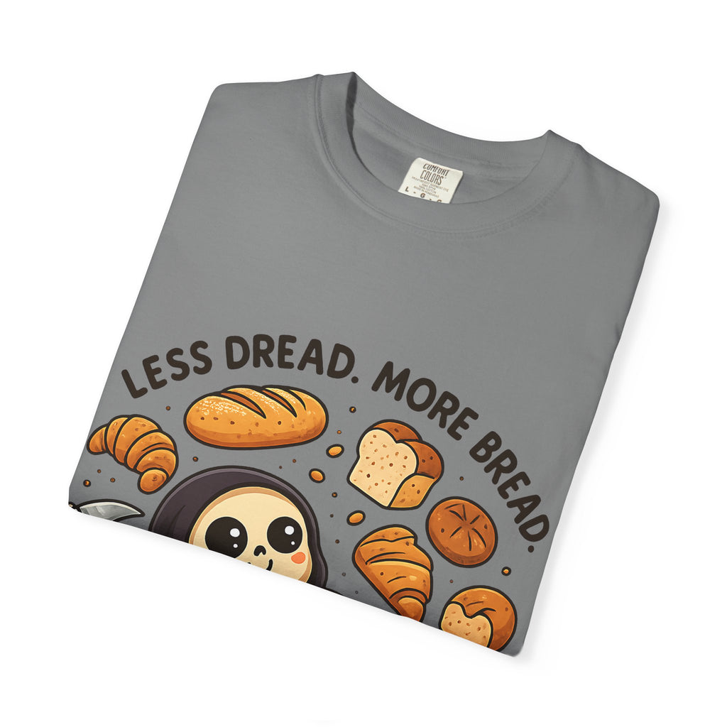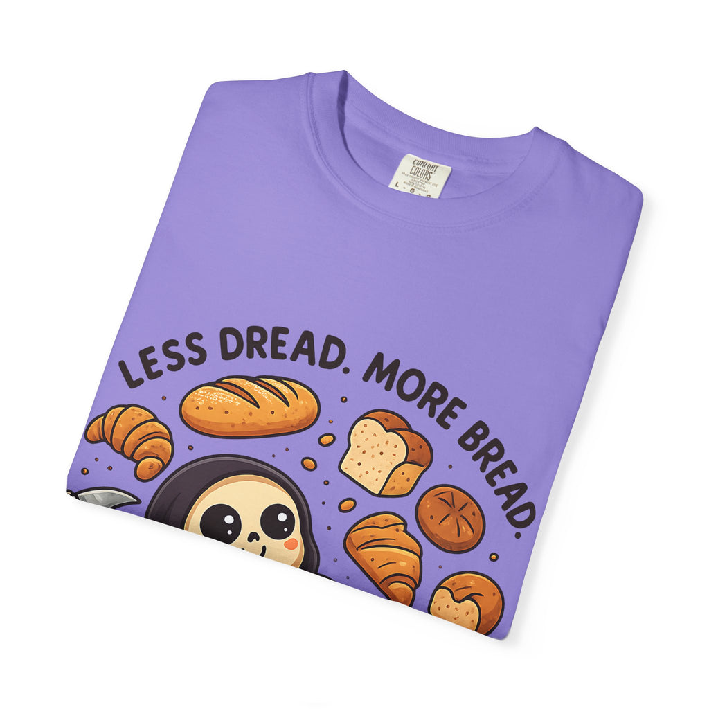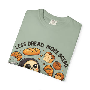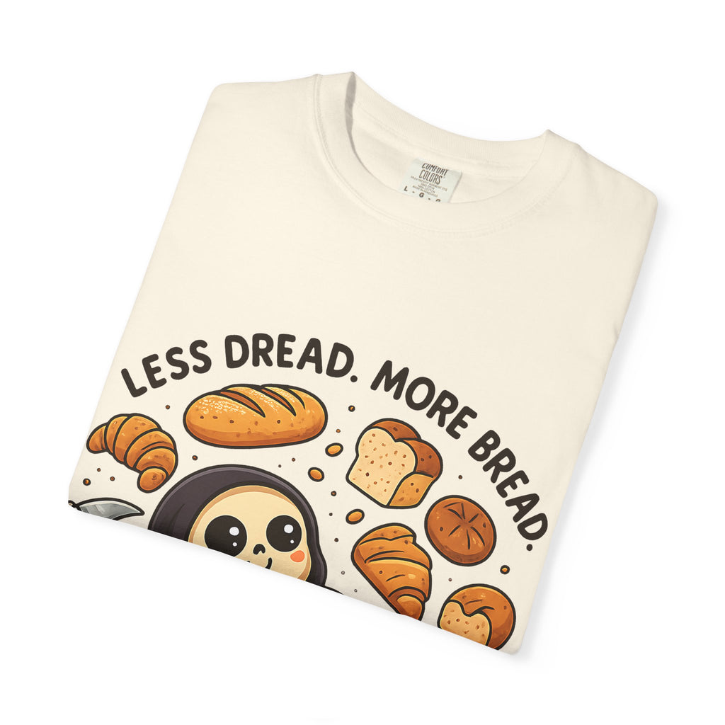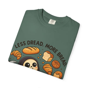 Featuring the world’s happiest Grim Reaper—who has clearly decided to swap soul-reaping for loaf-eating—this design is perfect for anyone whose primary coping mechanism involves gluten. Whether you're a baker, a professional snacker, or just someone trying to keep the scaries away with a croissant, this is your new uniform.